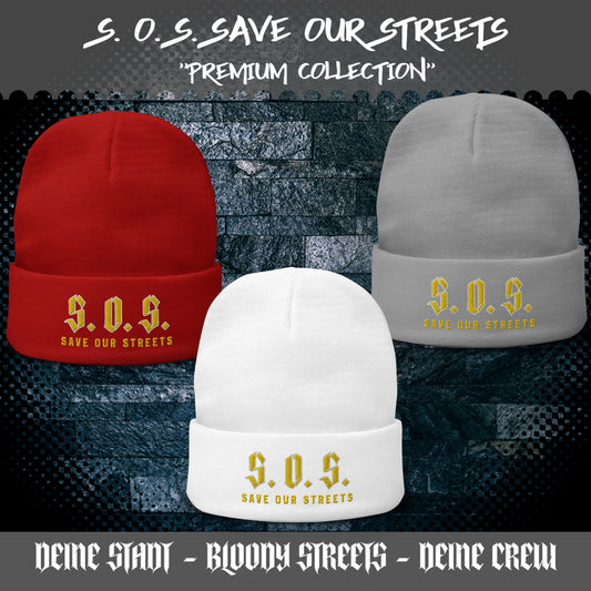 Streetwear Beanie - Stickerei S.O.S. SAVE OUR STREETS