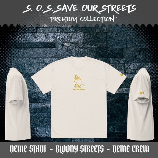 Oversized Streetwear T-shirt - SAVE OUR STREETS Stickerei 1 VERS. - verwaschenem Look