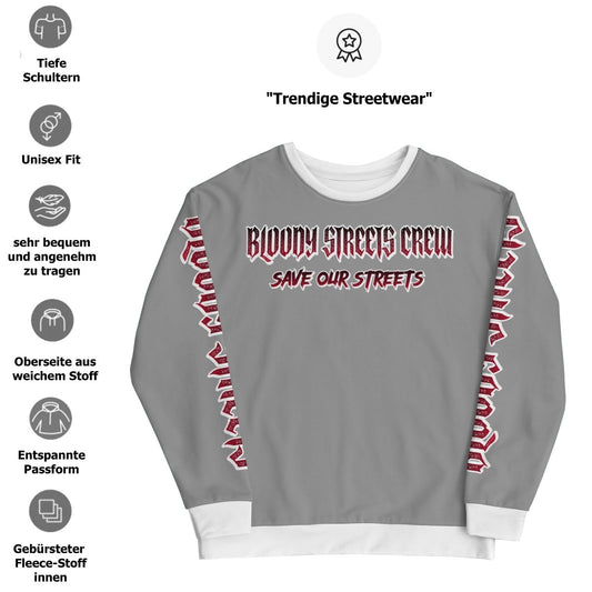 BLOODY STREETS Crew Member Streetwear Pullover Gray