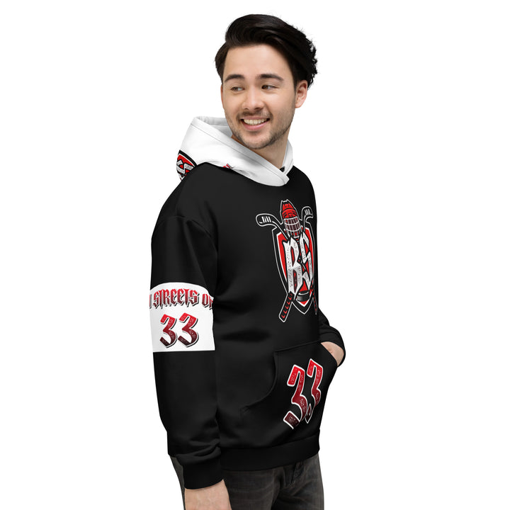 • Doppelt gefütterte Kapuze mit Motiv auf beiden Seiten