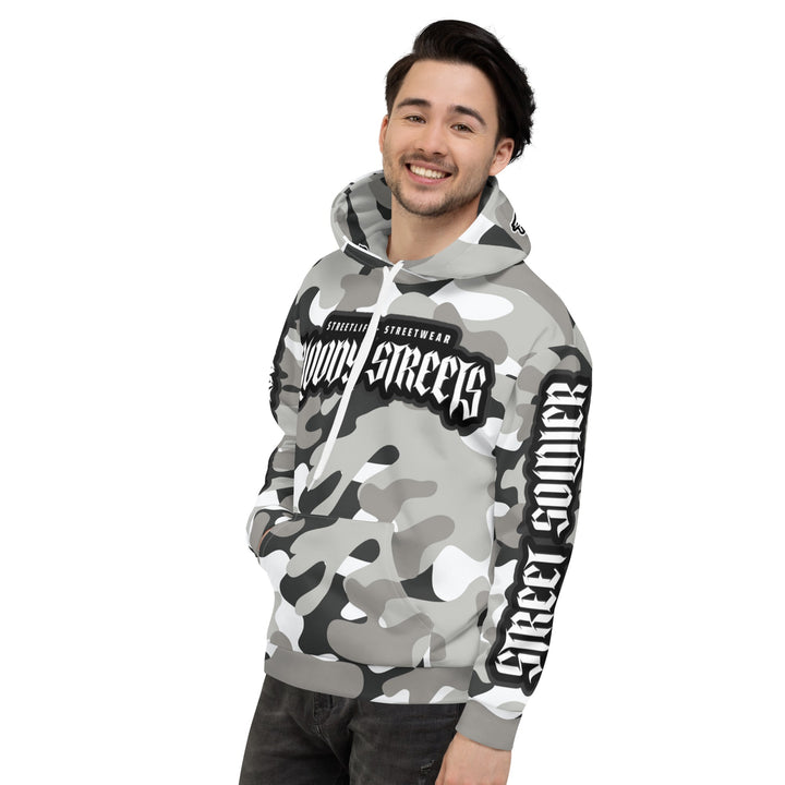 Der "Street Soldier" Unisex Hoodie ist ein absoluter Blickfang für alle Streetwear-Fans. Mit seinem coolen Camouflage-Muster und dem auffälligen Bull Dog Motiv auf der Vorderseite ist dieser Hoodie ein Must-have für Männer und Frauen gleichermaßen.